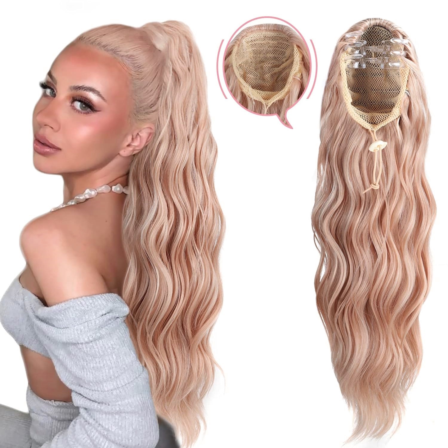 Coda di capelli con cordoncino Biondo Rosa