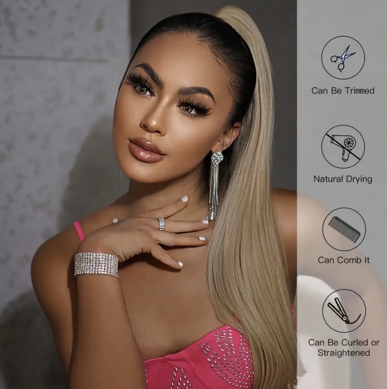 Un’extension per capelli di qualità realizzata con materiali di alta qualità, che non si danneggia facilmente e può essere facilmente pettinata per evitare grovigli. Dona un aspetto naturale e impeccabile. È anche facile da applicare e rimuovere per un uso ripetuto.