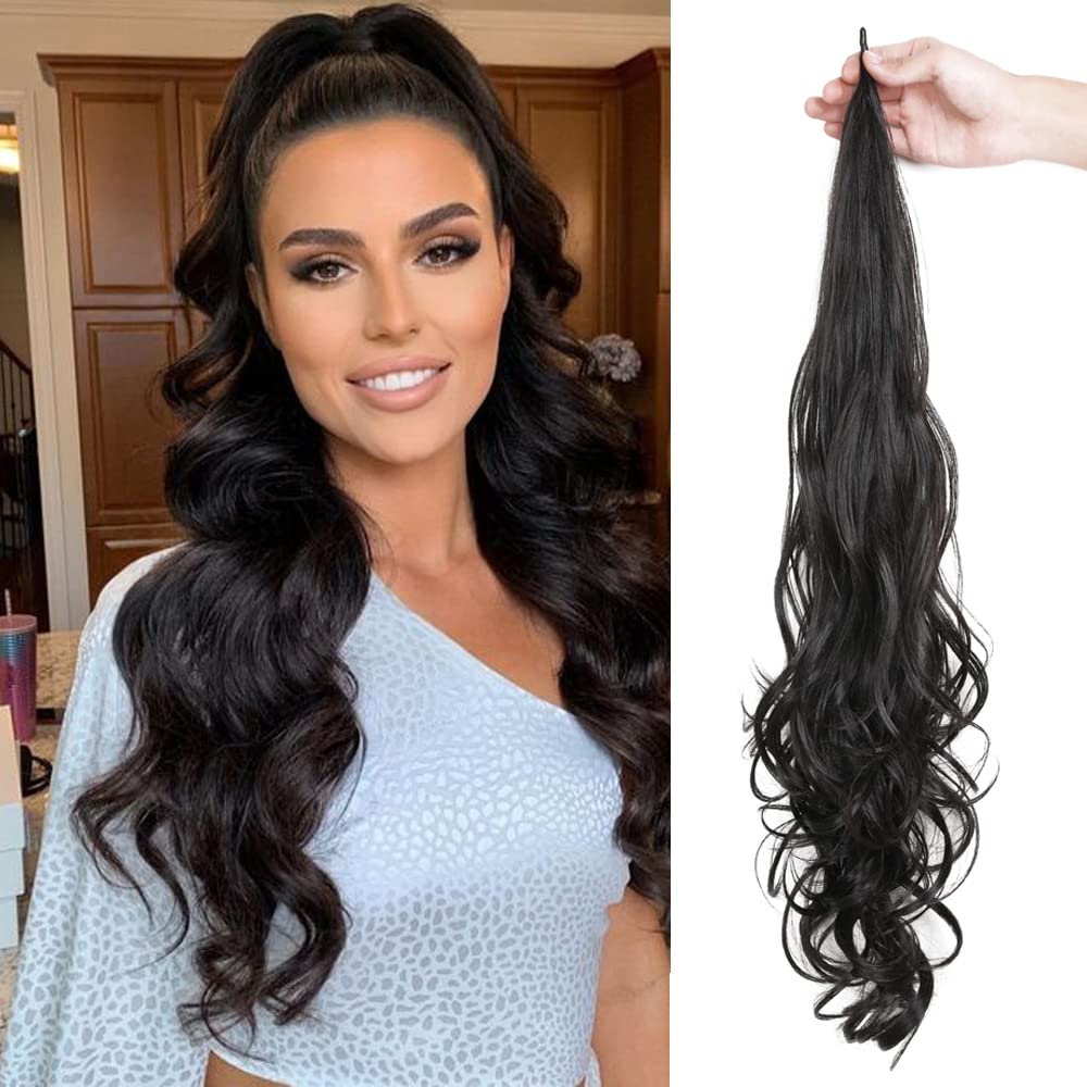 Le code di cavallo sono un modo semplice e veloce per creare un’acconciatura elegante e voluminosa. Queste extension sono realizzate con capelli sintetici e sono progettate per essere applicate sui capelli esistenti per creare una coda di cavallo lunga e piena.