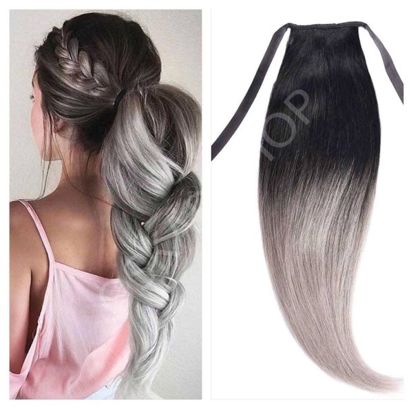 Coda di capelli sintetici #Ombre 1B Grigio Chiaro