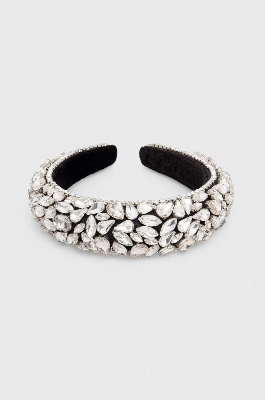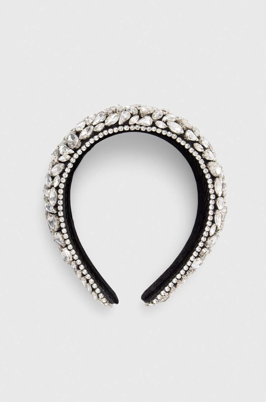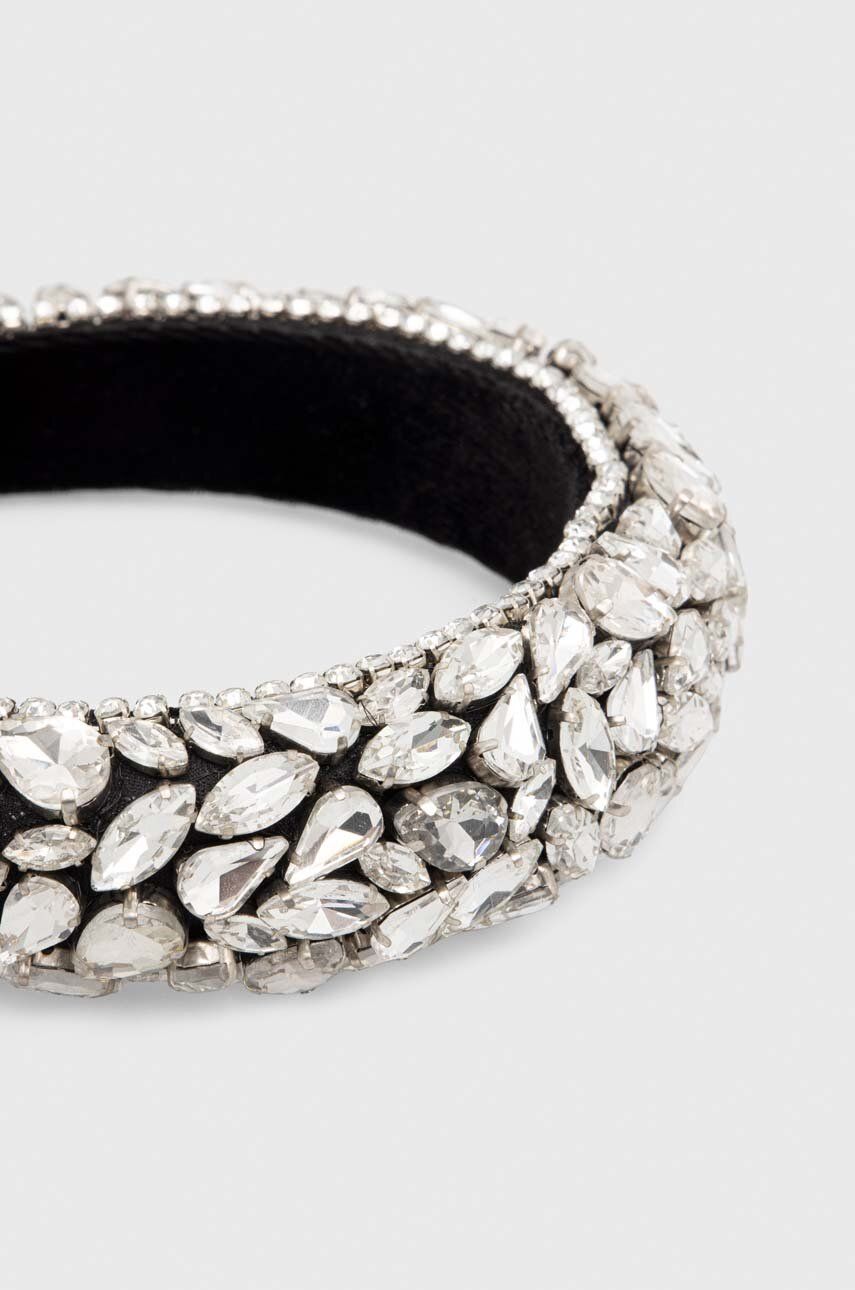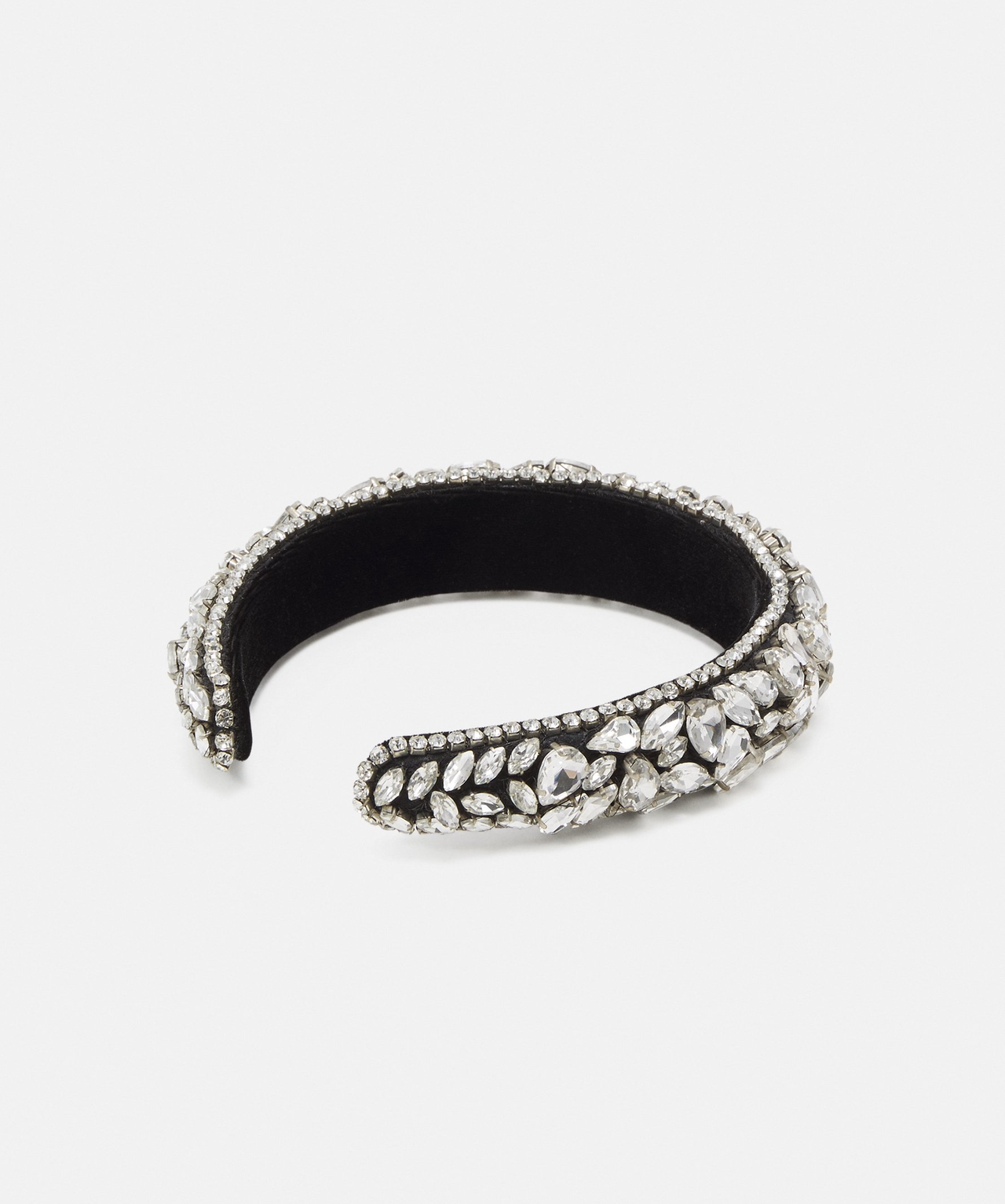 -L’archetto è su un comodo supporto, non necessita di clips, realizzato in velluto. Sul cerchietto sono cuciti e applicati strass bianchi e cristalli di vetro bianco di varie forme. Non contiene elementi in plastica.