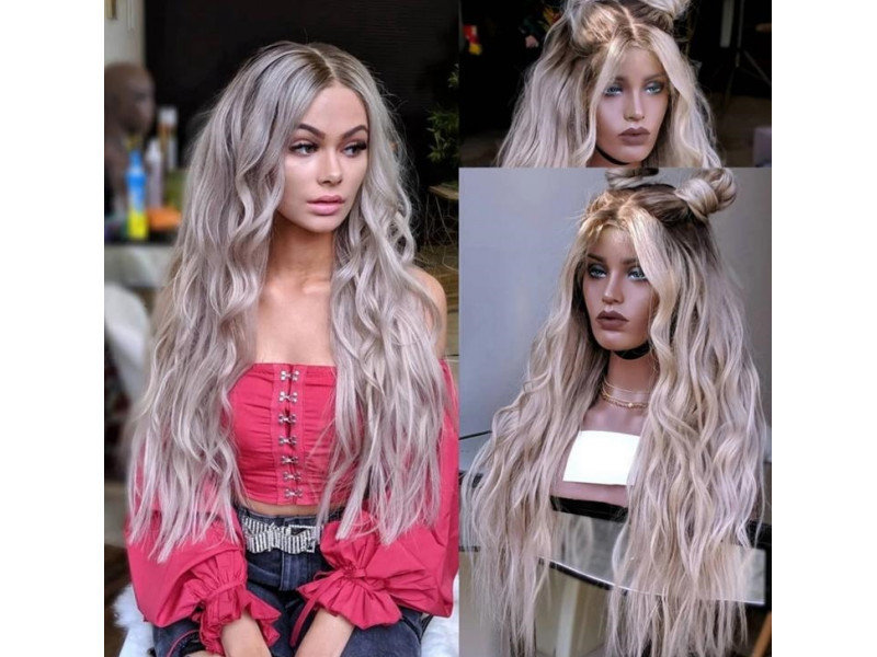 Parrucca interamente in pizzo di capelli naturali, lunga 60 cm, doppia stirata, Baby Hair