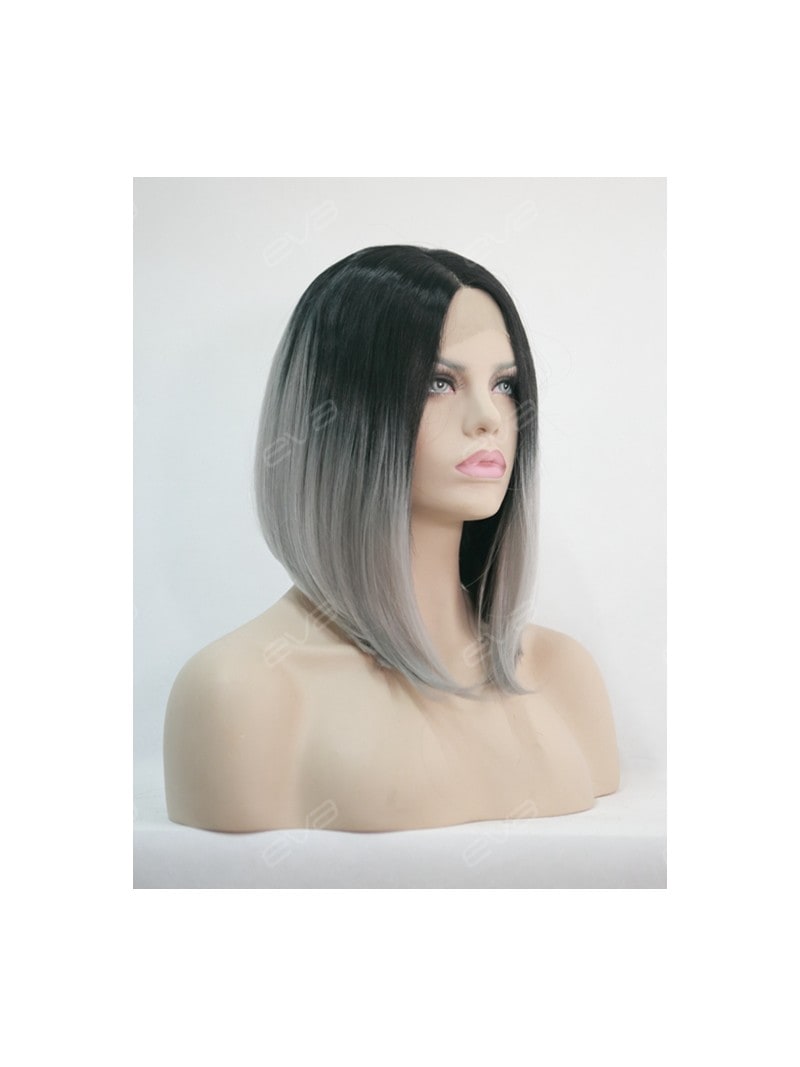 Parrucca in Capelli Naturali Corte Ombre Castano Molto Scuro/Biondo Grigio