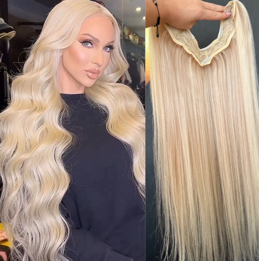 – Treccia a V extra volume con 5 miniclip, testa piena