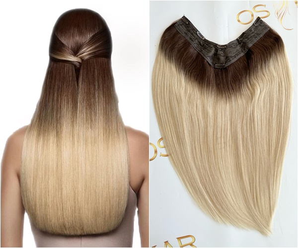 – Treccia a V extra volume con 5 miniclip, testa piena